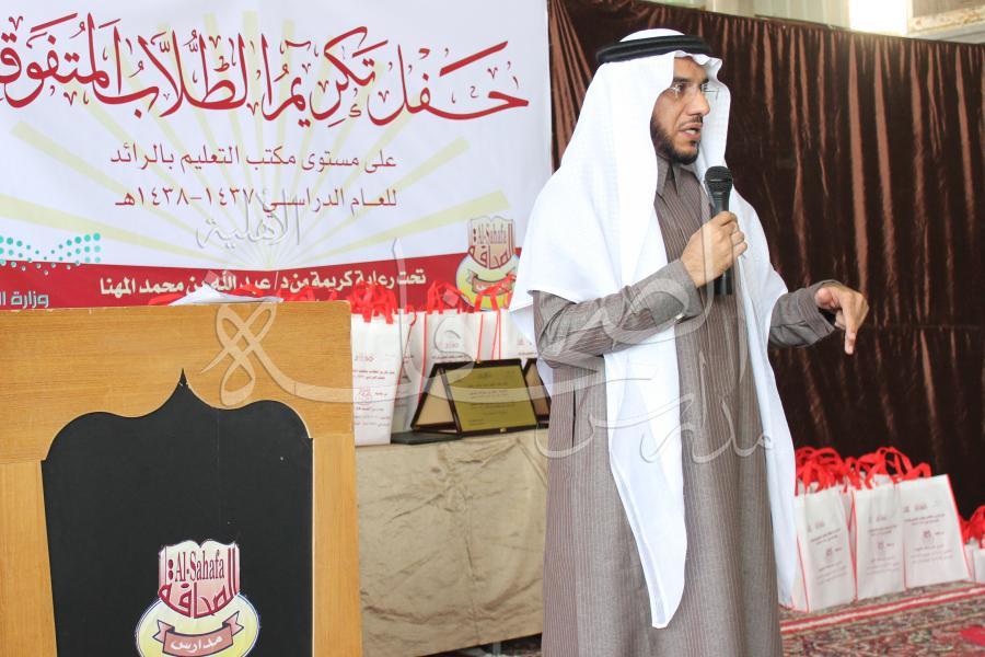 برعاية كريمة من د. عبد الله بن محمد المهنا مدير مكتب التعليم بالرائد، تشرفت مدارس الصحافة الأهلية برعاية حفل تكريم الطلاب المتفوقين على مستوى مدارس مكتب الرائد، للعام الدراسي 1436-1437هـ.