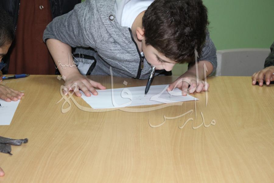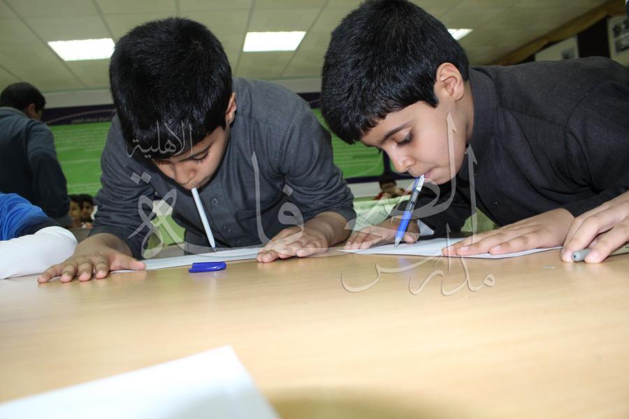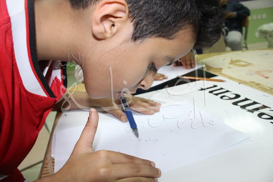 قامت أسرة اللغة العربية بالقسم الابتدائي (الصفوف العلوية) بإجراء مسابقة بين طلاب الصفوف (الرابع والخامس والسادس) في مهارة الكتابة بالفم، وذلك في جو من المتعة والمنافسة بين الطلاب لإظهار مهاراتهم وقدراتهم على التحكم بالقلم من خلال الفم.