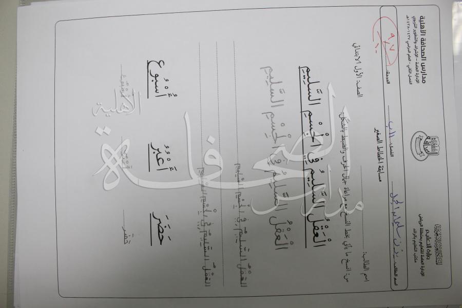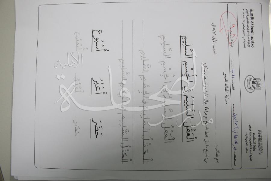 تم اجراء مسابقة الخطاط الماهر لطلاب الصف الأول الابتدائي ضمن برنامج شخصيتي أقوى لتنمية مهارة الخط العربي لديهم . الفصل الدراسي الثاني 1437/1438هـ