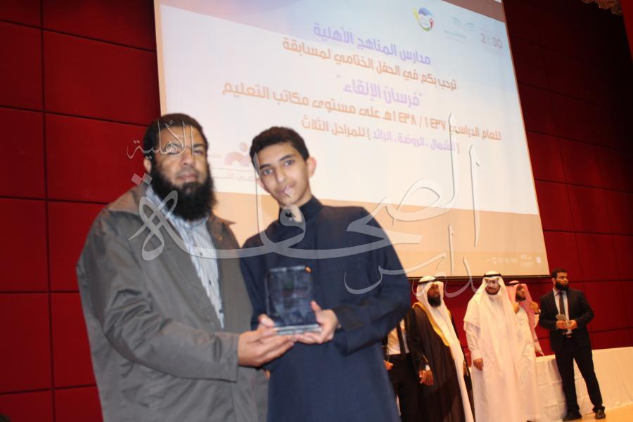 في حضور مدير إدارة النشاط الطلابي الدكتور أنور ابو عباءة تم تكريم الطالب/ أحمد مصطفي الصاوي الفائز بالمركز الثاني على مستوي مكتب التعليم بالرائد في مسابقة الإلقاء الفردي، كما تكريم الأستاذ فيصل/ بشير غريب، المشرف على تدريب الطالب، وذلك يوم الأحد الموافق 20-6-1438هـ.