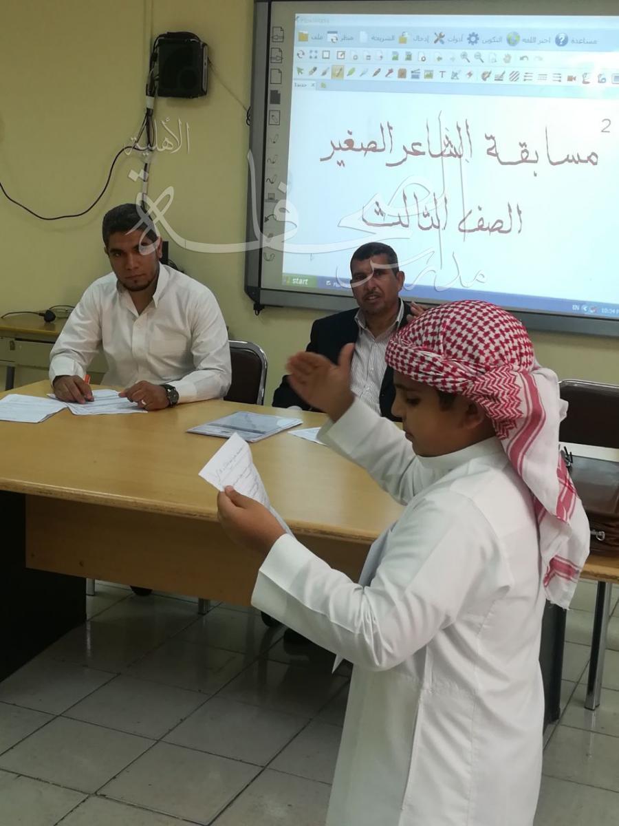مسابقة الشاعر الصغير بين طلاب الصف الثالث الابتدائي لتنمية موهبة الإلقاء لديهم وتمثيل المعنى، بإشراف المشرف التربوي ا. مصطفى صاوي،