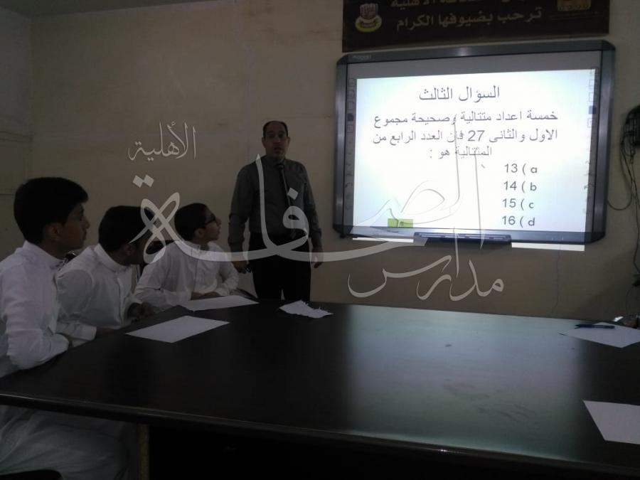 أقامت أسرة الرياضيات يوم الأحد الموافق 20-1-1440هـ مسابقة أوائل الطلاب للصف الأول الثانوي فى مادة الرياضيات بهدف إبراز القدرة على العمل التعاوني والتخطيط والمشاركة وحسن التصرف وتحمل المسؤولية والثقة بالنفس للطلاب، تحت إشراف المشرف التربوي أ/ محمود هلال وبالتعاون مع أسرة الرياضيات 1- تامر محمد 2- ابراهيم حبوش