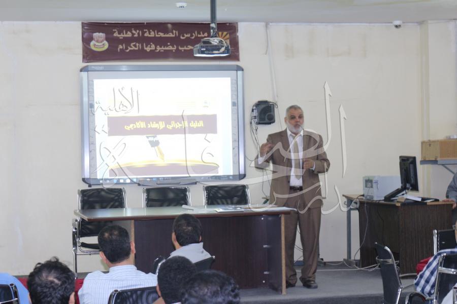 اقام القسم الثانوي تحت اشراف قائد المدرسة ووكيل الشؤون التعلمية بالمدرسة ورشة للمعليمن للتعريف بنظام المقررات ودور المرشد الاكاديمي وذلك يوم الثلاثاء الموافق 22-1-1440هـ