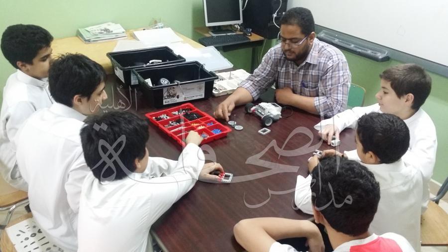 قامت فرقة الربوت بإشراف الأستاذ/ محمد الشيمي اليوم الخميس الموافق 3-2-1438هـ بشرح مكونات الربوت الآلي ومعرفة اسم كل قطعة ووظيفتها.