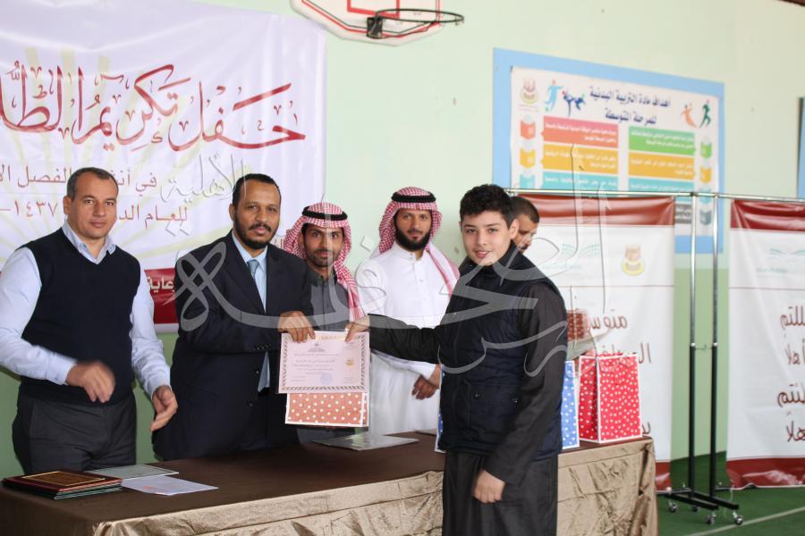 في حفل ختام الأنشطة الطلابية للفصل الأول من العام الدراسي 1437-1438هـ، قام النشاط الطلابي بمتوسطة الصحافة الأهلية بتكريم جميع المعلمين والطلاب المتميزين في الأنشطة الطلابية المختلفة، وبحضور هيئة الإشراف التربوي، وذلك يوم الاثنين الموافق 11-4-1438هـ