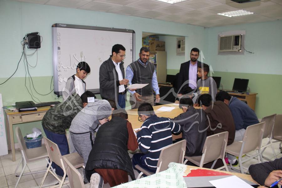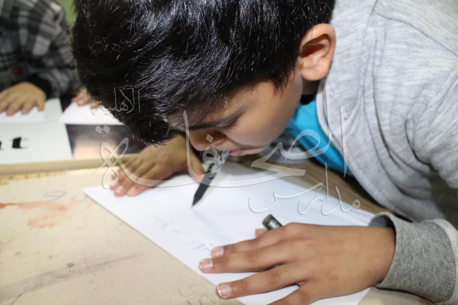 قامت أسرة اللغة العربية بالقسم الابتدائي (الصفوف العلوية) بإجراء مسابقة بين طلاب الصفوف (الرابع والخامس والسادس) في مهارة الكتابة بالفم، وذلك في جو من المتعة والمنافسة بين الطلاب لإظهار مهاراتهم وقدراتهم على التحكم بالقلم من خلال الفم.
