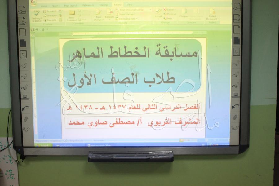 تم اجراء مسابقة الخطاط الماهر لطلاب الصف الأول الابتدائي ضمن برنامج شخصيتي أقوى لتنمية مهارة الخط العربي لديهم . الفصل الدراسي الثاني 1437/1438هـ