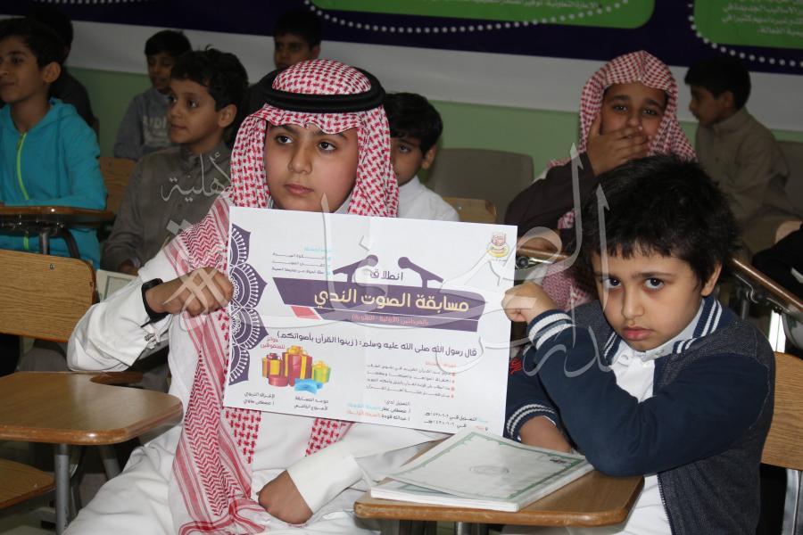 تم إجراء وتنفيذ مسابقة الصوت الندي بين طلاب المرحلة العلوية لاختبار أجمل وأعذب الأصوات في تلاوة وترتيل القرآن الكريم ولبيان فضل أهل القرآن ومنزلة قارئ القرآن وذلك يوم الأربعاء 9-6-1438هـ .