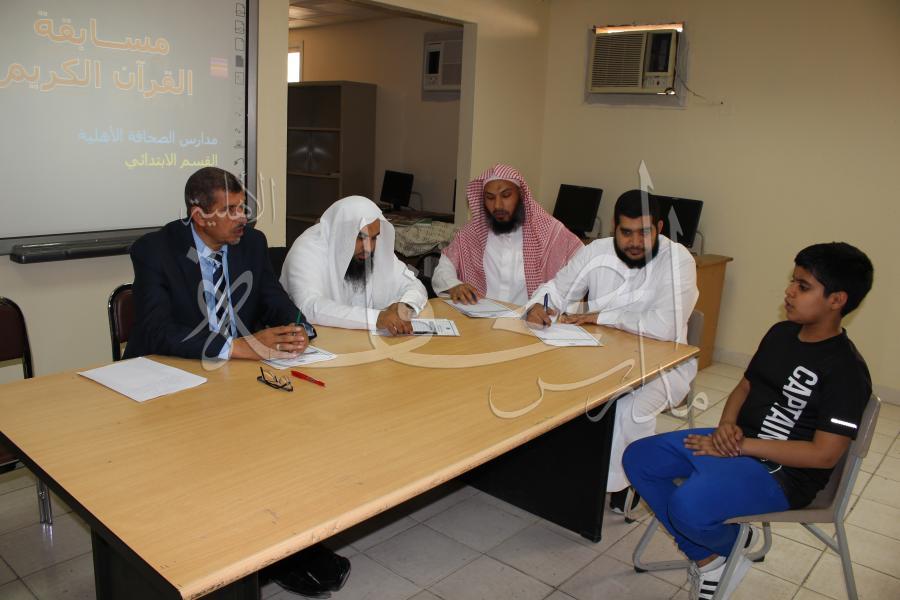 قامت المدرسة بإجراء مسابقة القرآن الكريم للمرحلة العلوية بين صف رابع وخامس وسادس وذلك في (حفظ جزء عمٍّ ) وحفظ جزء (عمٍّ وتبارك)، وذلك بإشراف أ/ مصطفى صاوي وأ / إيهاب عبد الحميد و أ / غسان المتولي، كانت لجنة الاختبار المعلمين أ/ علاء عثمان أ/ رضا مصطفى و أ/ أحمد طلبة معد التقرير أ/ مصطفى عمار