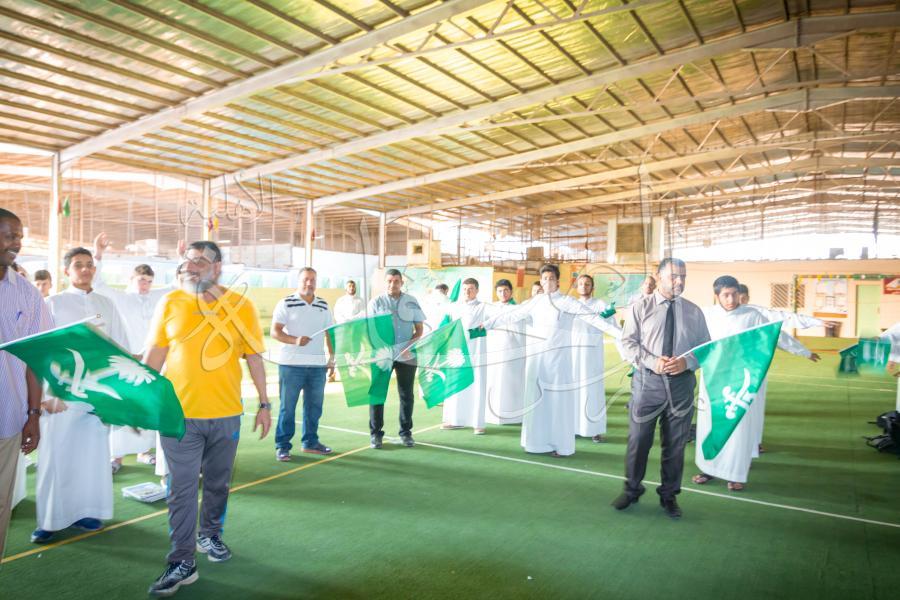 المدرسة من معلمين ووكلاء في الاحتفال باليوم الوطني