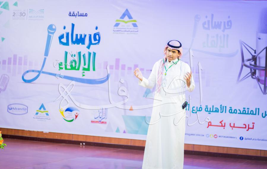 في مسابقة فرسان الإلقاء ( الإلقاء الفردي ) بالطالب نواف على العنزي ,والذي تم ترشيحه