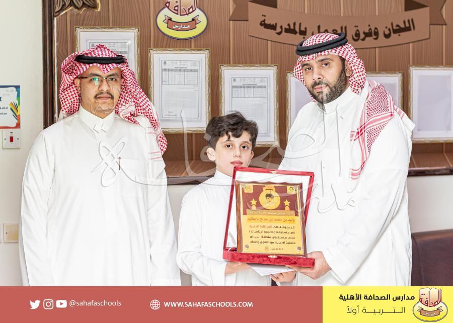 تكريم الطالب : وليد محمد باعظيم الصف الرابع في ابتدائية الصحافة الأهلية