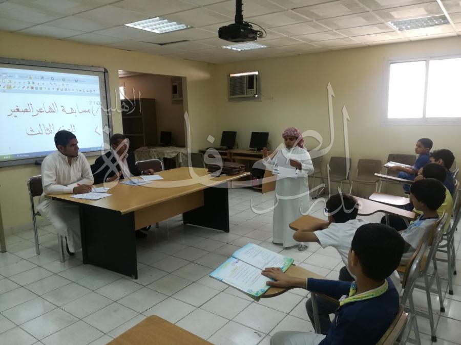 مسابقة الشاعر الصغير بين طلاب الصف الثالث الابتدائي لتنمية موهبة الإلقاء لديهم وتمثيل المعنى، بإشراف المشرف التربوي ا. مصطفى صاوي،