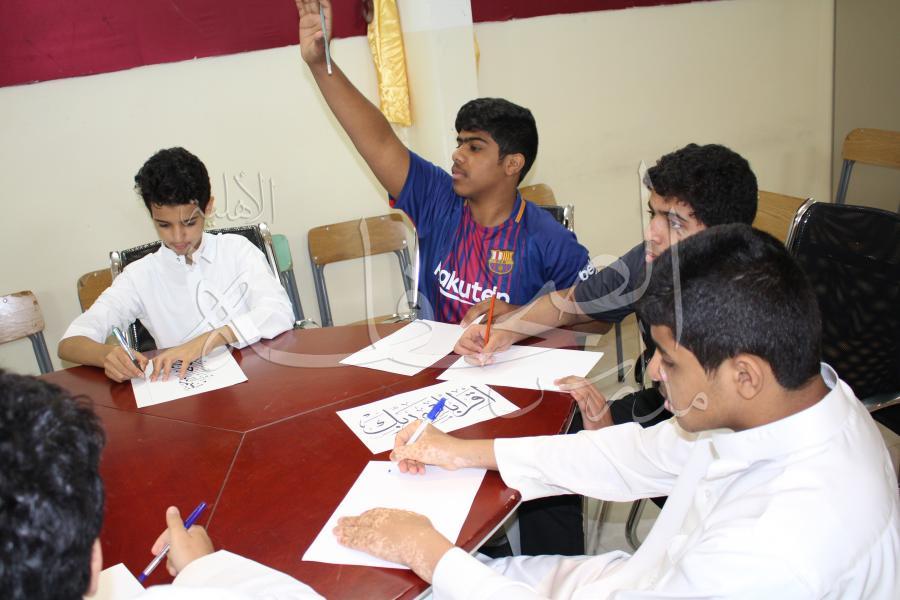 برنامج إثرائي للطلاب (قواعد الخط الحسن) ضمن برنامج موهبتي في لغتي، لتزويد الطلاب المتفوقين ببناء معرفي متميز في فروع اللغة العربية وتشجيع المتفوقين على التفكير البناء والإبداعي ومواصلة التعمق في فهم اللغة العربية، قدم الدورة الأستاذ / سيد الوزير، يوم الأربعاء الموافق 5-2-1439 هـ .
