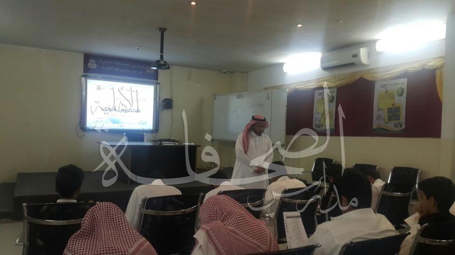 ضمن برنامج المهارات الحياتية لطلاب المرحلة الثانوية بهدف تنمية ثقافة الطالب بقدرتِه على التعاملِ بنجاحٍ مع متغيراتِ الحياة المختلفة؛ قام الأستاذ/ إبراهيم المشرقي مدير الشؤون التعليمية بالمدارس، بإلقاء محاضرة للطلاب بعنوان (شخصيتي أقوى)، وذلك يوم الثلاثاء الموافق 24-2-1439هـ.
