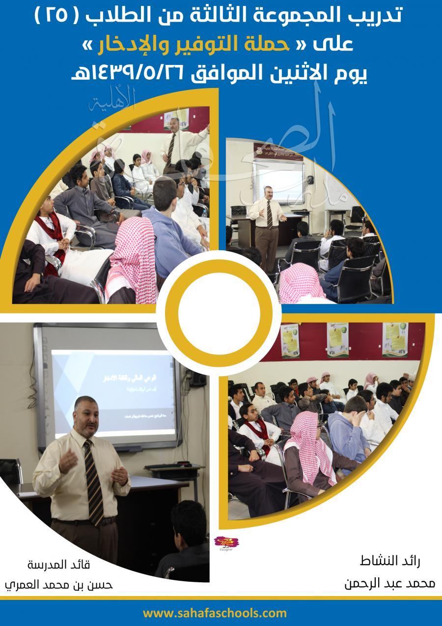 شاركت ثانوية الصحافة في حملة الوعي المالي وثقافة الادخار، واستهدفت المدرسة عدد 100 طالب من الصفوف المختلفة وذلك على مدار ثلاثة أسابيع (من الأسبوع الثاني إلى الأسبوع الثالث)، ويهدف البرنامج بناء الوعي الادخاري، وزيادة الوعي المالي لدى النشئ، وتثقيف وتوعية الطلاب بأهمية الادخار.