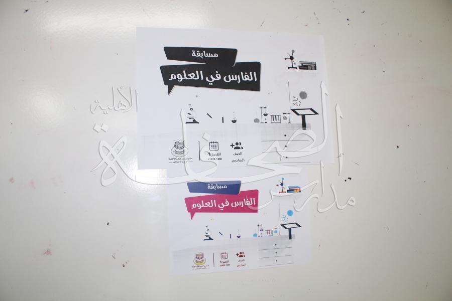 ضمن برنامج الأنشطة العلمية في مدارس الصحافة الأهلية - القسم الابتدائي، أقيمت مسابقة علمية في مادة العلوم للصف السادس تحت عنوان (الفارس في العلوم) لزيادة التحصيل العلمي للطلاب والدافعية لديهم، وذلك يوم الخميس 30 - 2 - 1440هـ.