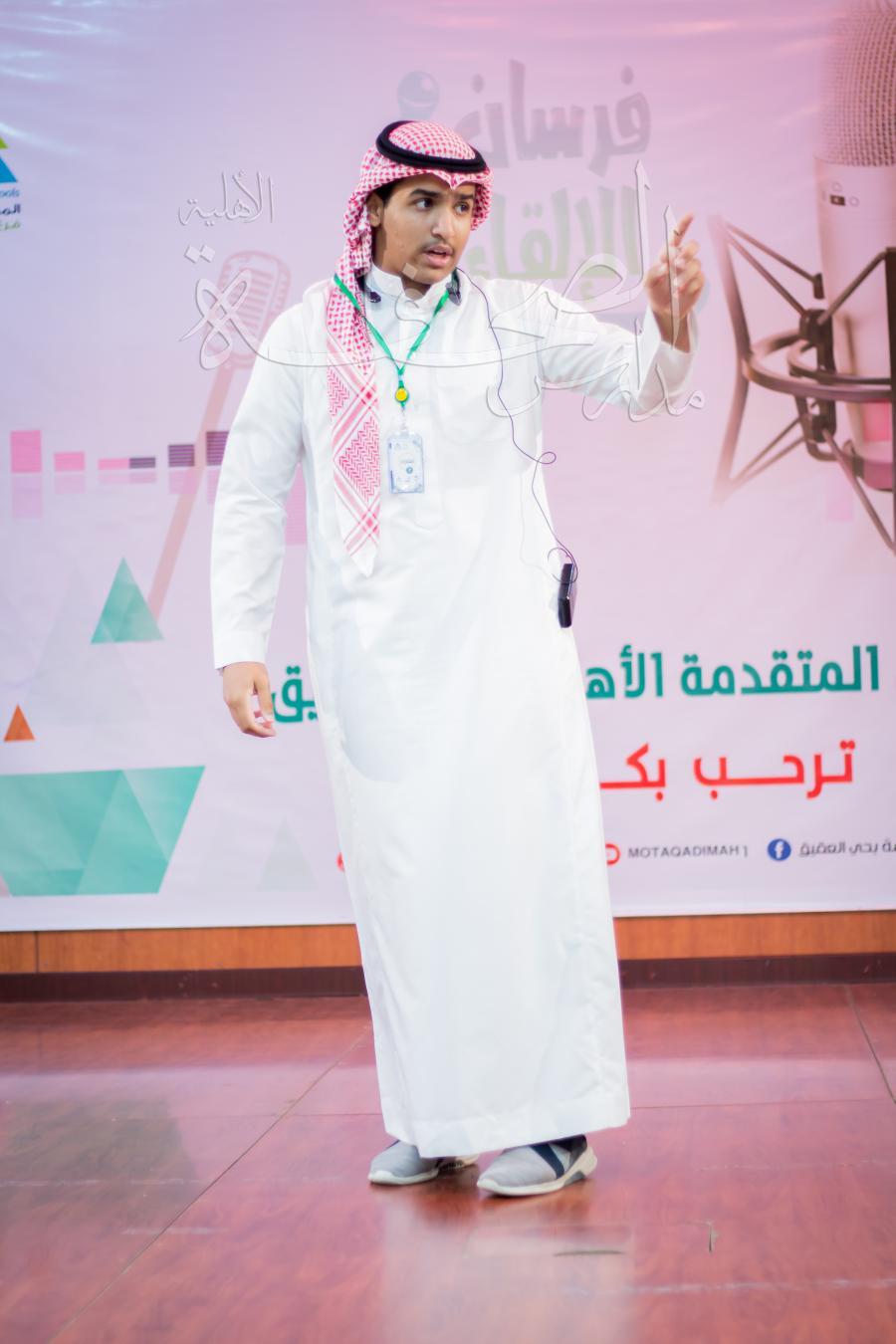 في مسابقة فرسان الإلقاء ( الإلقاء الفردي ) بالطالب نواف على العنزي ,والذي تم ترشيحه