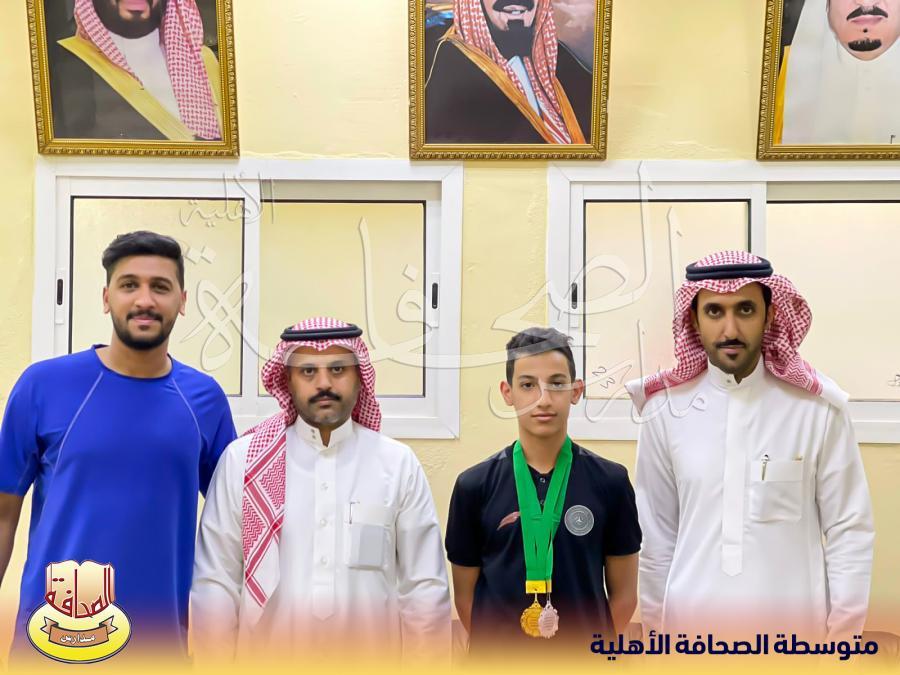 حصول الطالب زايد الغامدي بالصف الثالث المتوسط على الميدالية الذهبية في بطولة السباحة على مستوى منطقة الرياض متوسطة الصحافة الأهلية