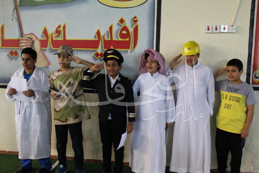 الاخبار - احتفاء طلاب القسم الابتدائي باليوم الوطني السادس والثمانين