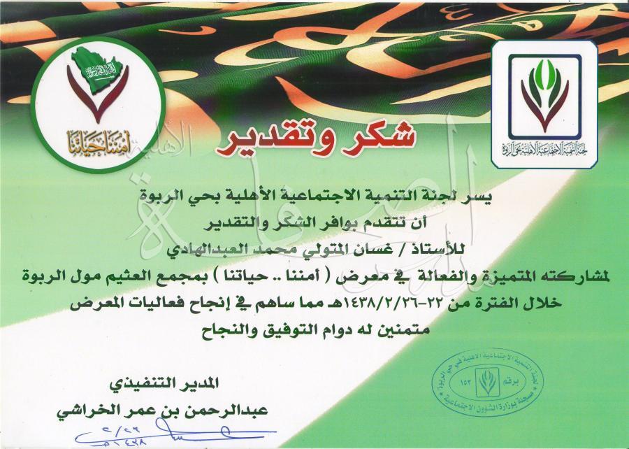 شاركت مدرسة الصحافة (القسم الابتدائي) في معرض "أمننا حياتنا" الذي أقامته وزارة العمل، وشاركت فيه وزارة التعليم حيث مثّل المدارس رائد النشاط الأستاذ/ غسان المتولي عبدالهادي، والذي كان ضمن فريق العمل الأساسي الذي قام بالإعداد والتجهيز للمعرض واستقبال الزوار خلال الفترة من 22-2 إلى26-2-1438هـ، وتم تكريمه في نهاية المهرجان من قبل وزارة العمل والتنمية الاجتماعية