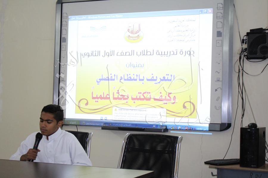 دورة تدريبية لطلاب الصف الأول الثانوي للتعريف بالنظام الفصلي وكيف تكتب بحثا علميا