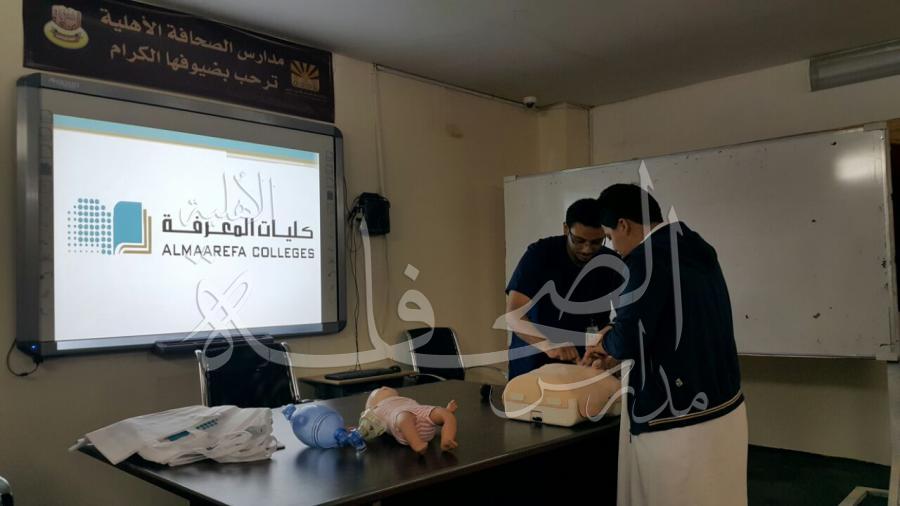 قامت كليات المعرفة بالتنسيق مع المدرسة لتنظيم دورة للطلاب في الإسعافات الأولية، قدم الدورة أطباء متخصصين، وقد كانت الدورة لمدة يومين، حيث بدأت الثلاثاء الموافق 17-5-1438 هـ، وحتى يوم الأربعاء الموافق178-5-1438هـ .