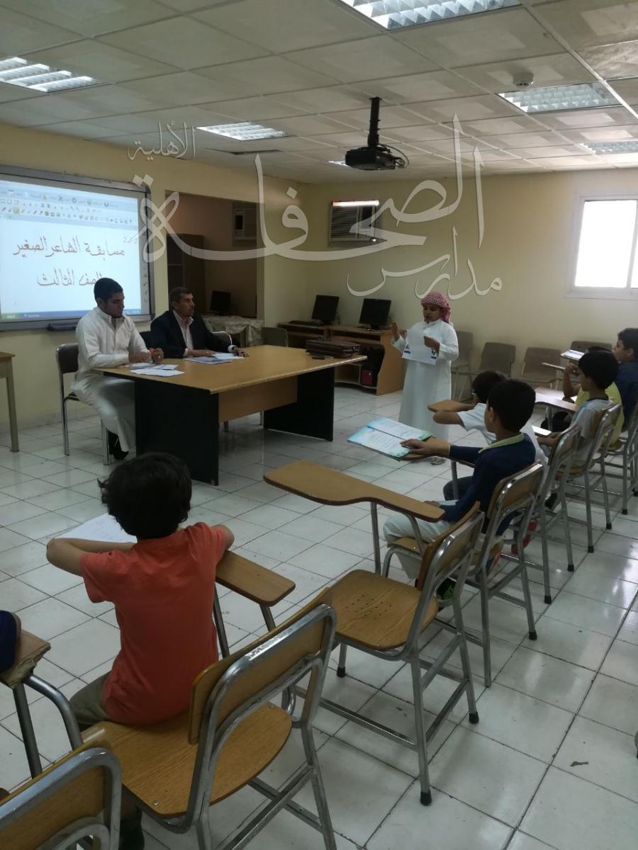 مسابقة الشاعر الصغير بين طلاب الصف الثالث الابتدائي لتنمية موهبة الإلقاء لديهم وتمثيل المعنى، بإشراف المشرف التربوي ا. مصطفى صاوي،