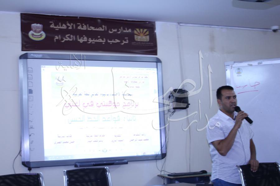 برنامج إثرائي للطلاب (قواعد الخط الحسن) ضمن برنامج موهبتي في لغتي، لتزويد الطلاب المتفوقين ببناء معرفي متميز في فروع اللغة العربية وتشجيع المتفوقين على التفكير البناء والإبداعي ومواصلة التعمق في فهم اللغة العربية، قدم الدورة الأستاذ / سيد الوزير، يوم الأربعاء الموافق 5-2-1439 هـ .