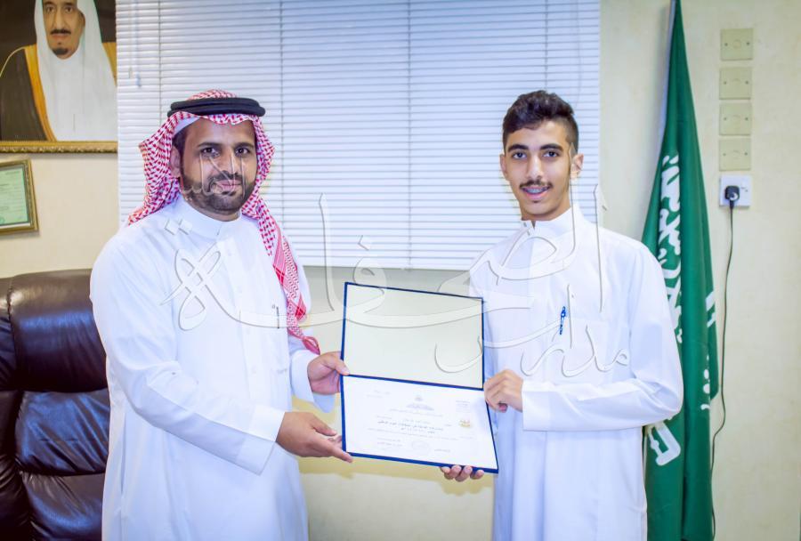 لأحد الطلاب المتميزين في الاحتفال باليوم الوطني للملكة 89