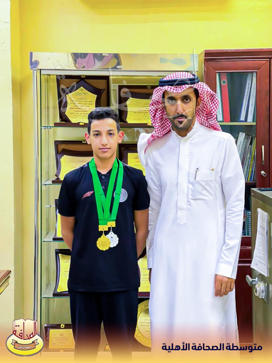 حصول الطالب زايد الغامدي بالصف الثالث المتوسط على الميدالية الذهبية في بطولة السباحة على مستوى منطقة الرياض متوسطة الصحافة الأهلية